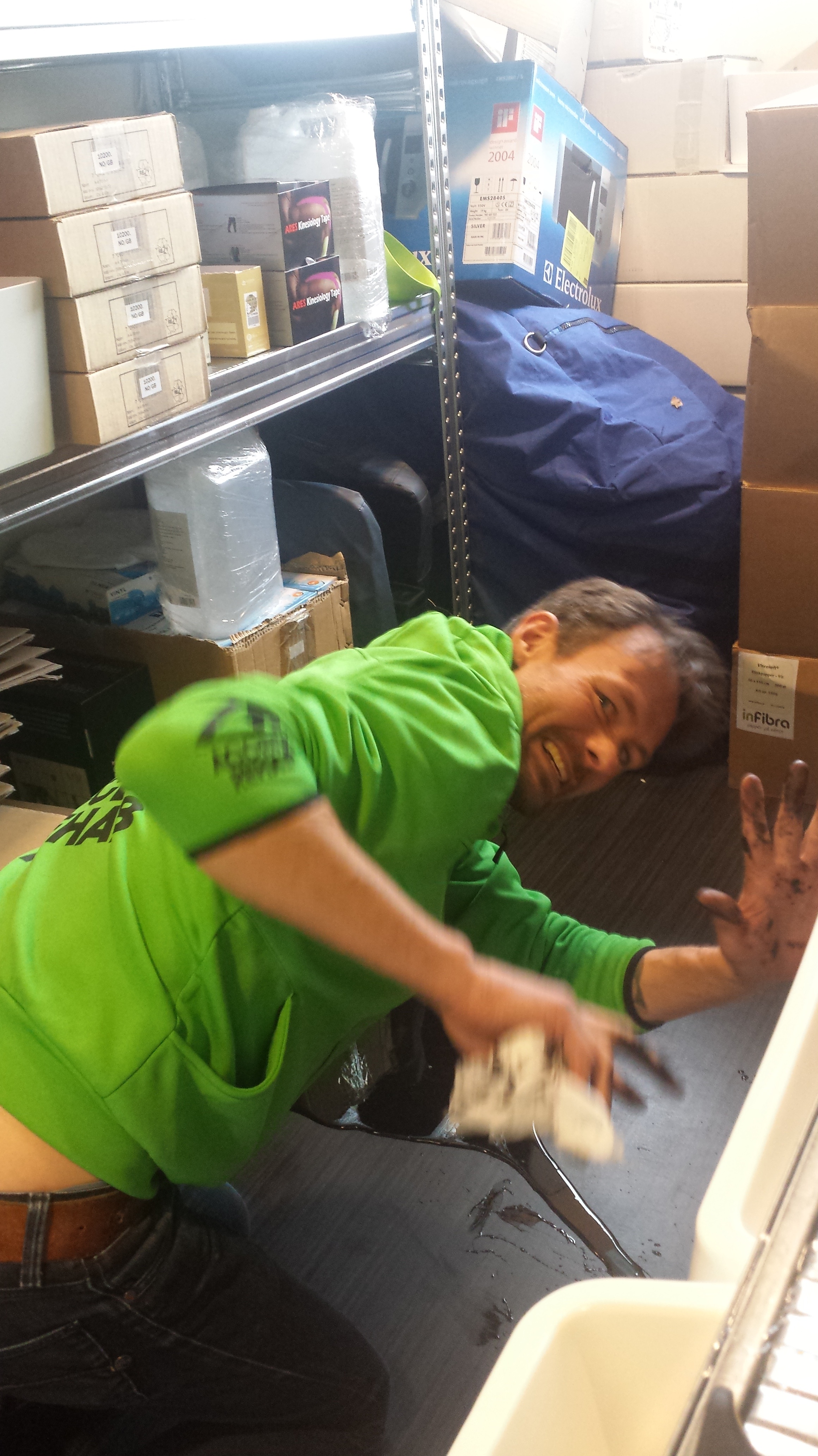 Någonstans i blodsockerdippen strax innan lunchen hör jag Mattias ropa lite ängsligt ”Sara.. har du tid en sekund?” Javisst! Styr in mot förrådet för att hitta honom över en utspilld burk med svart färg. Där ska den ju inte vara! Lite som ett barn som fallit på eget grepp, när det ska smygäta kakor från burken på högsta hyllan och river ner något annat med buller och bång. Med skillnaden att han skulle åt en pump för att fylla pilatesbollen med luft och fick med sig en burk med färg.. Tur att den var vattenlöslig och att det inte skvätte på något väsentligt.