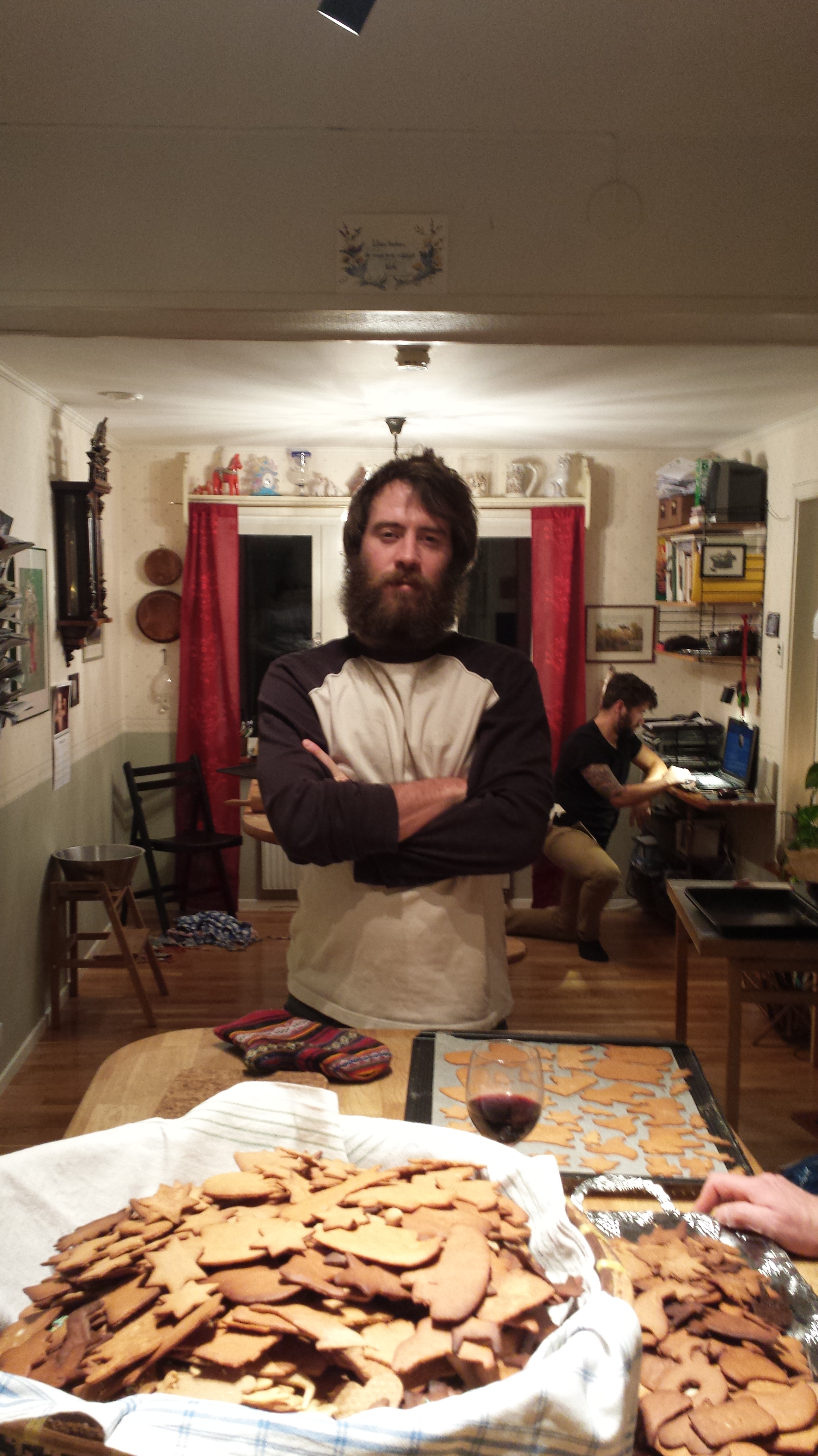 Alla tar normalt med sig varsin deg/familj. Förutom i år då pappa hade fått för sig att vi skulle ha 2!? Det resulterade såklart i en jädra massa pepparkakor. Baka baka baka, med några pauser för mat och skitsnack såklart 🙂 Årets tillskott på formfronten (förutom alla pepparkakor som freebasades) var en palm och en Kiwi-fågel.